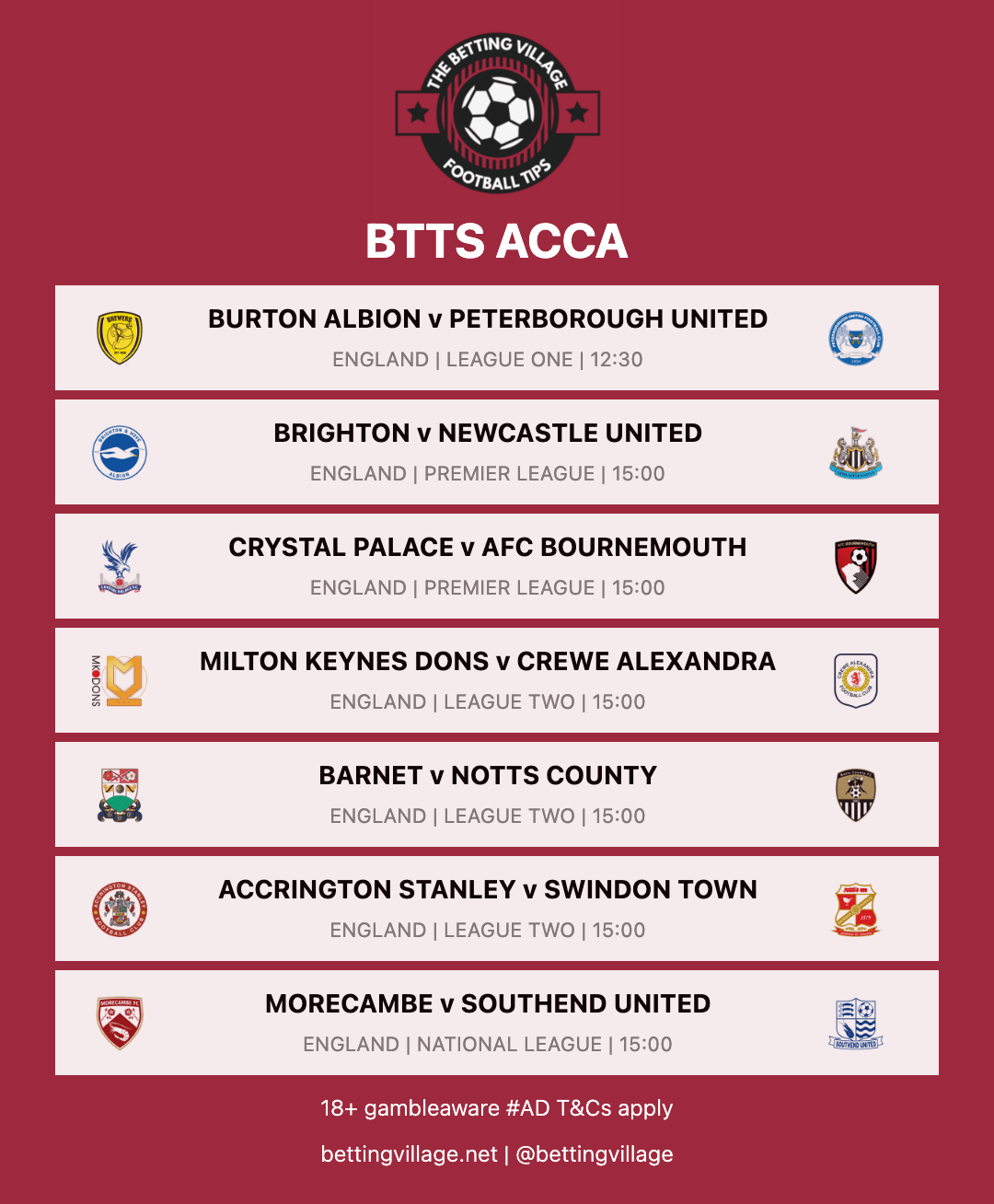 This accumulator is with Bet365. There is a link below which will add each selection directly to your bet slip in just 1 click!