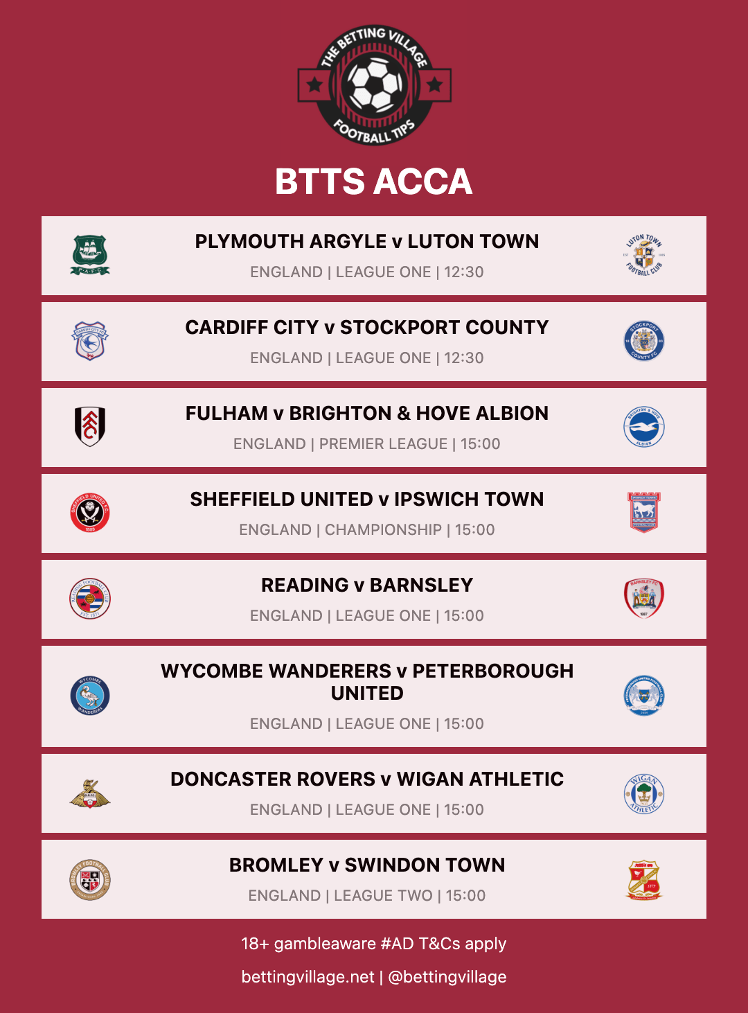 70/1 + 20% Acca Boost at the time of posting. Prices subject to change. Always check each selection matches up to the image above.