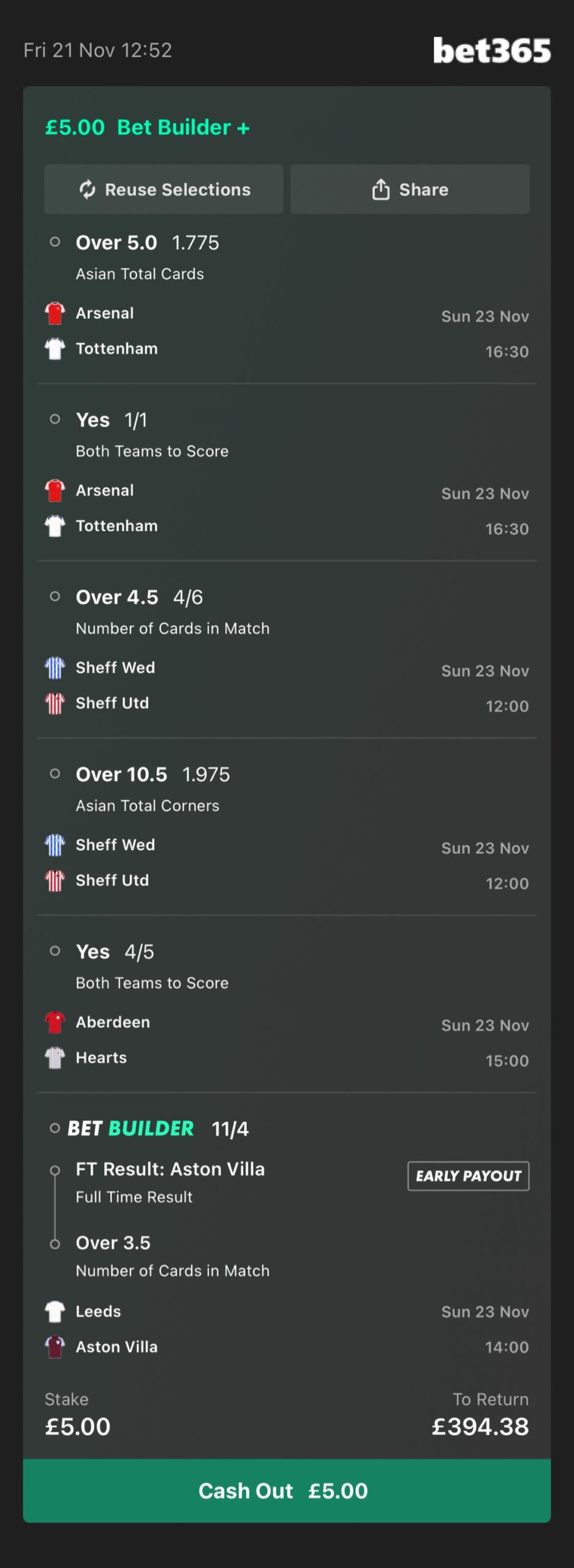 This accumulator is with Bet365. There is a link below which will add each selection directly to your bet slip in just 1 click!