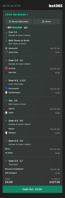 This accumulator is with Bet365. There is a link below which will add each selection directly to your bet slip in just 1 click!