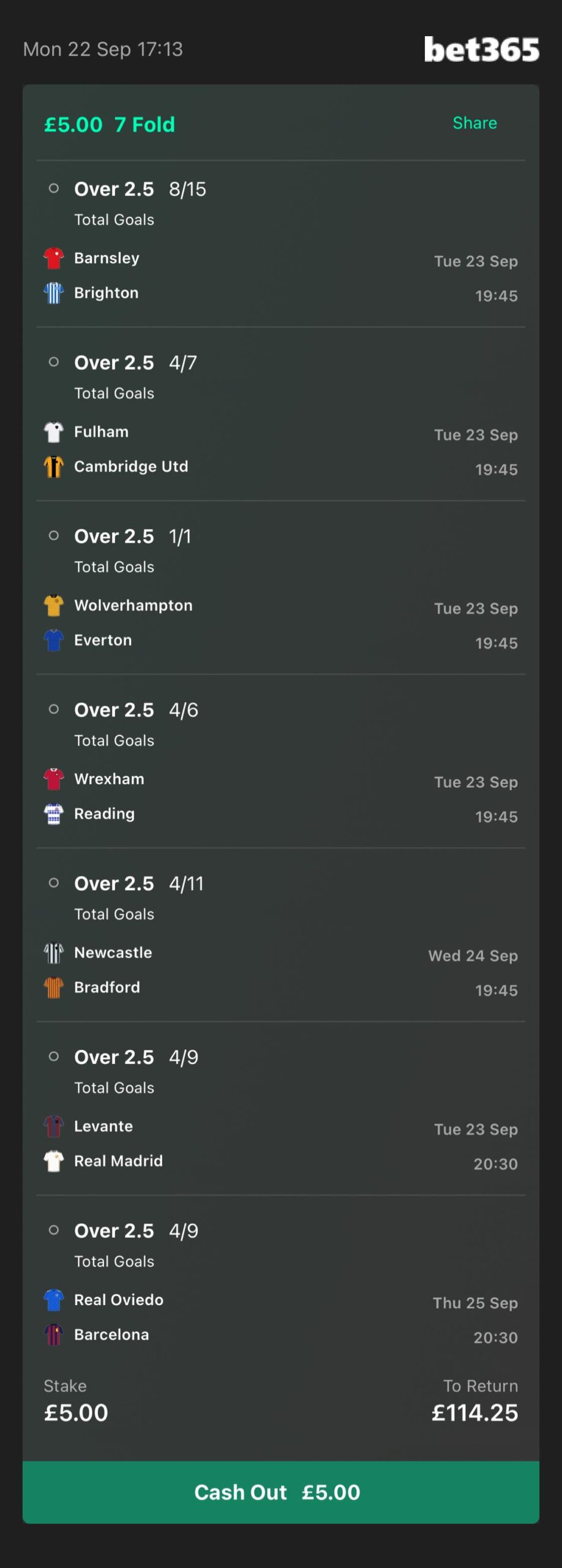 21/1 odds at the time of posting. Prices subject to change. Always check each selection matches up to the image above.