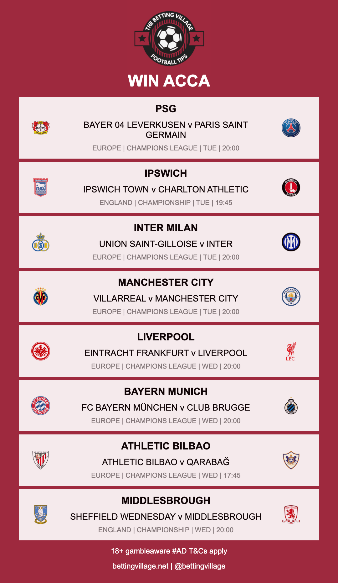 32/1 + 20% Acca Boost at the time of posting. Prices subject to change. Always check each selection matches up to the image above.