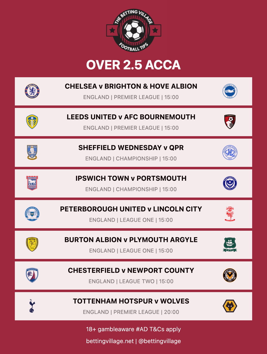 This accumulator is with Bet365. There is a link below which will add each selection directly to your bet slip in just 1 click!
