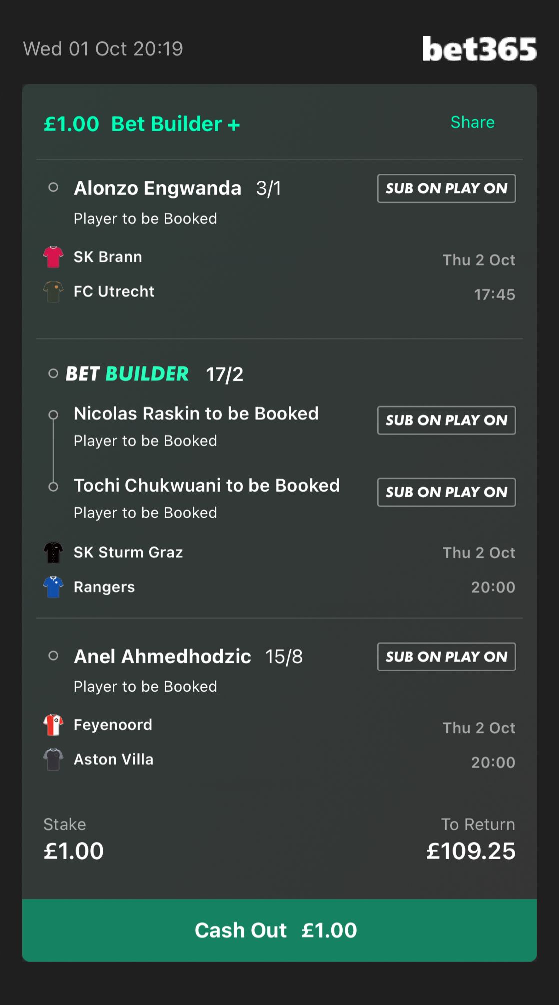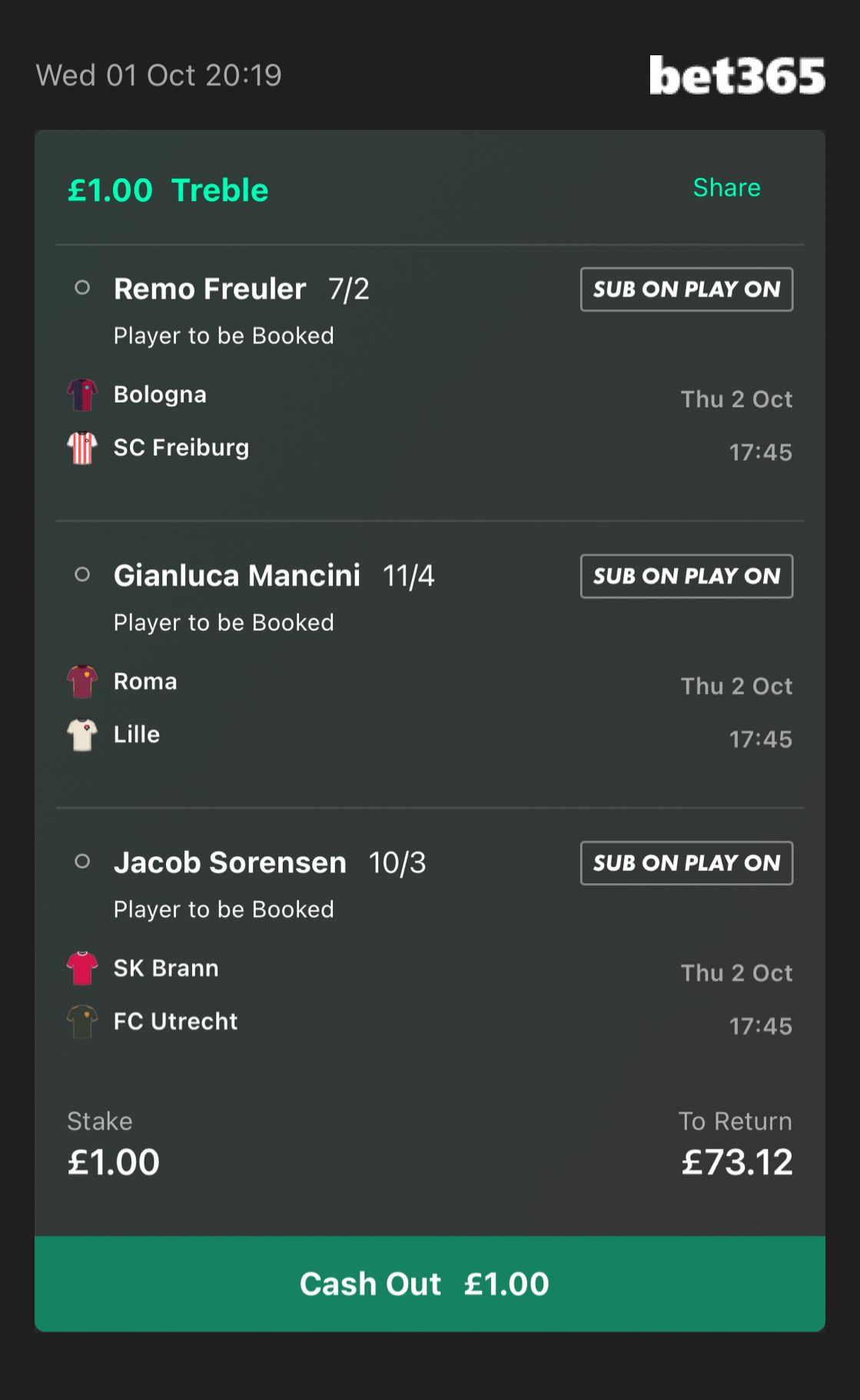 THESE SELECTIONS ARE ALL COVERED BY SUB ON PLAY ON WITH BET365. THIS MEANS IF ANY PLAYERS ARE SUBSTITUTED, THE PLAYER COMING ON CONTINUES THE BET MEANING YOU ARE GUARANTEED THE FULL MATCH.