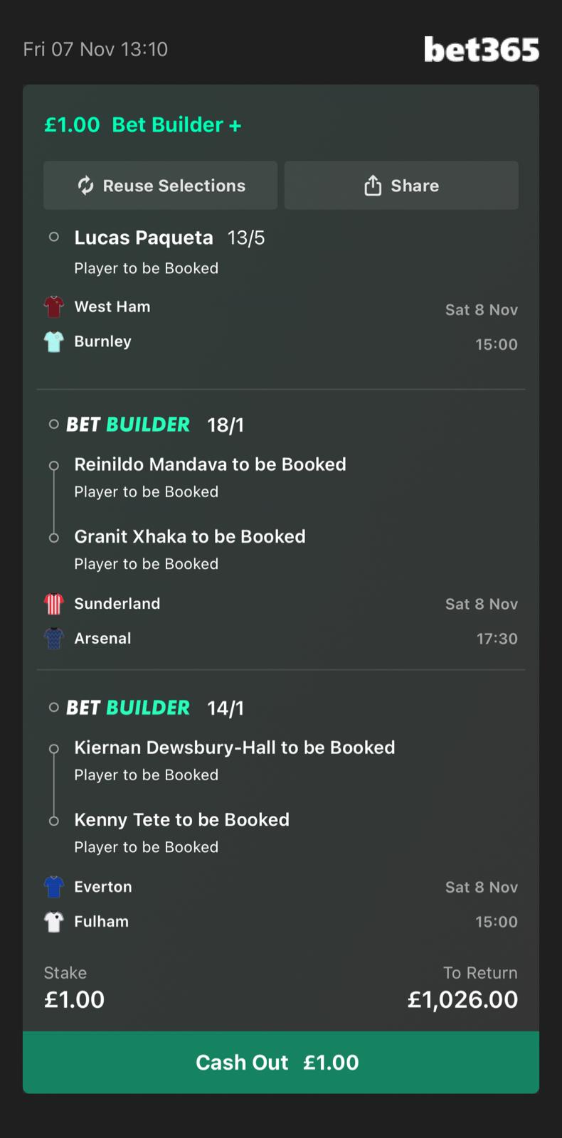 WE CAN ALSO PLACE THE BET IN ADVANCE AS BET365 VOID PLAYERS WHO DON’T START AND THE REST WILL CONTINUE AND THE ODDS WILL BE REDUCED ACCORDINGLY.