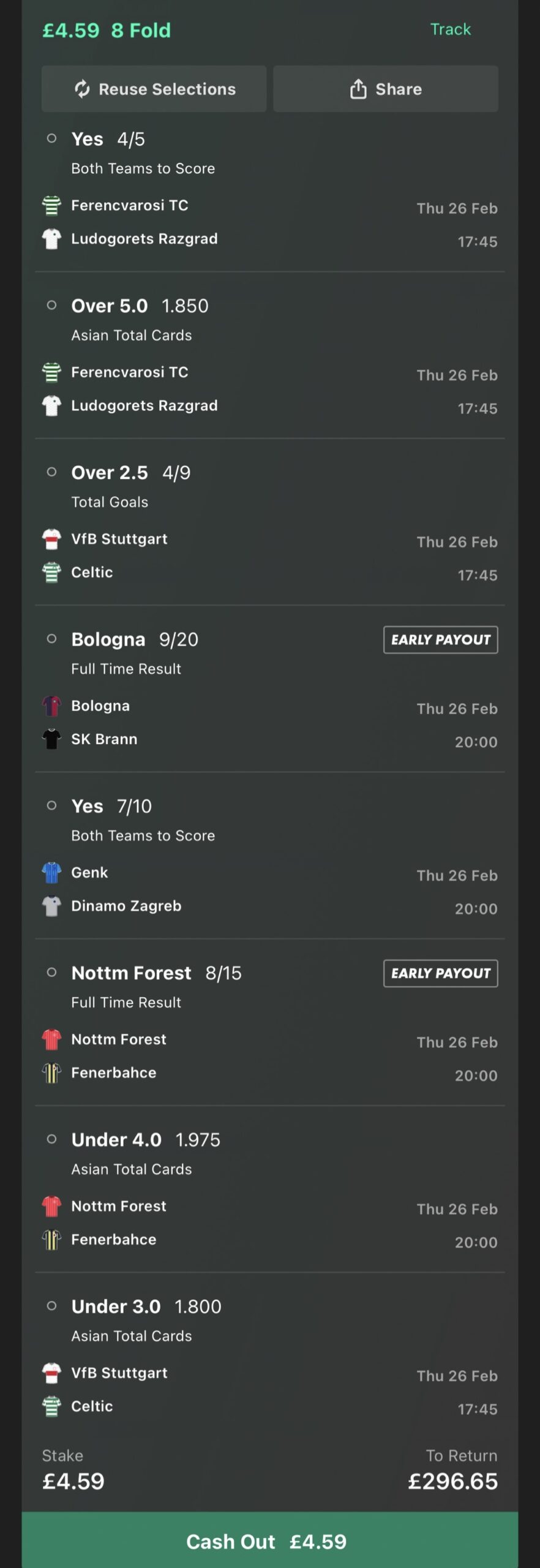 You can edit or remove any selections you like. The accumulator is just made up of our selections it isn’t compulsory so feel free to give it a miss if you don’t like the look of it.